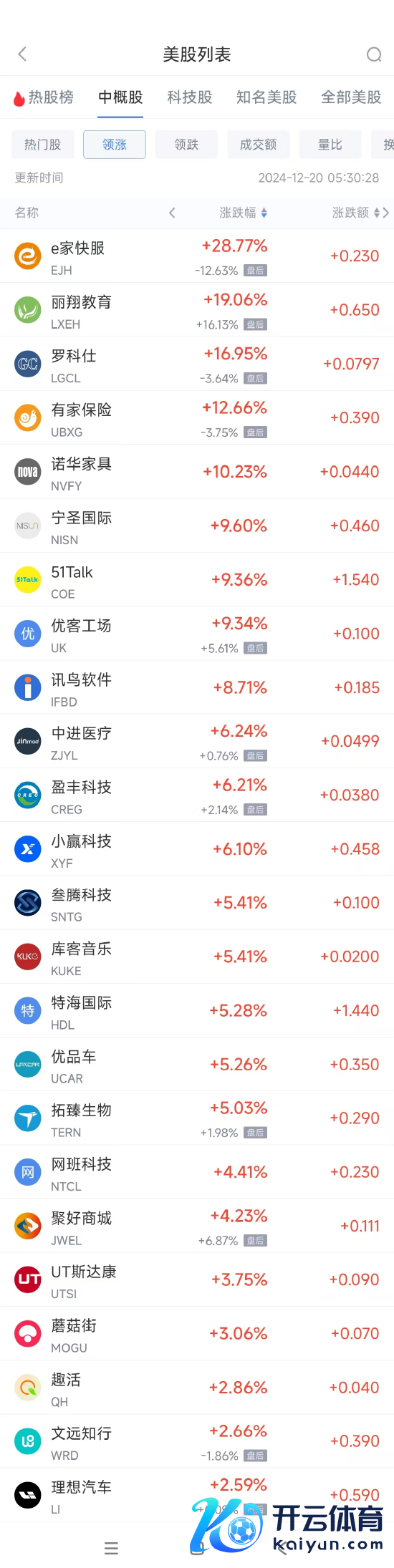 领涨中概股列表: