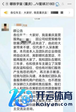 1 月 24 日,记者查阅多个公众平台发现,对于哪吒汽车在多地关闭直营门店的音书接续被曝出。有哪吒汽车用户晒出其收到确当地直营门店关店见知夸耀,当地哪吒汽车直营管事细腻东说念主称,"因公司谋略策略导致当地直营门店关店,由此给全球带来未便深表歉意。团队企业微信将自动关闭,弗成再管事用户"。