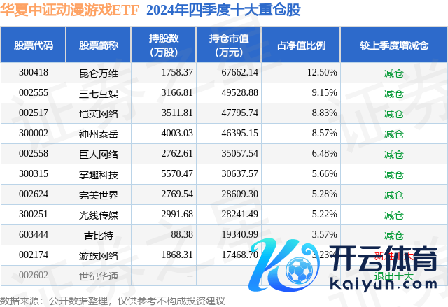 中原中证动漫游戏ETF为指数型-股票基金,证实最新一期基金季报表示,该基金财富建树:股票占净值比99.5%,无债券类财富,现款占净值比1.03%。基金十大重仓股如下:
